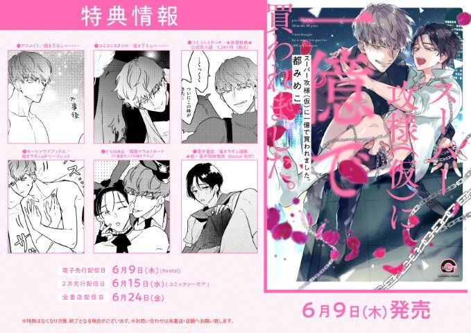 突然リストラに遭った近光はヤケ酒の勢いのまま自分をチャリティーオークションに出品。平凡顔に平凡体形、ヤリ捨てされた経験ばかりで性格にも魅力がない自分が落札されるはずがない。…と思っていた近光だが、目が覚めるとなぜか金持ちイケメン・理央に落札されていた!? 解放条件は「スーパー攻様を目指す理央に、恋愛の自信を持たせること」。違約金は1億円!! 後がない近光は、童貞の理央に手っ取り早く自信を持たせるため、Hを仕掛けることに。
