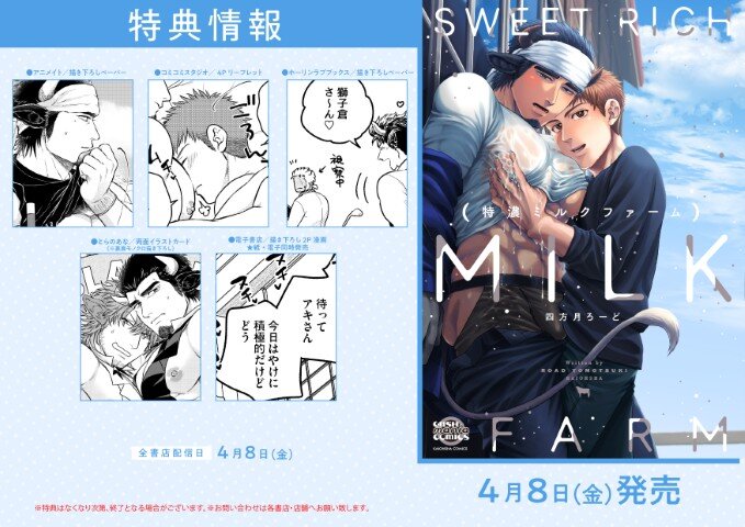 祖父の跡を継いだばかりの新人農場主・春臣は、従業員の秋田が白くて甘い液体を滴らせながら自慰をする姿を目撃してしまう。実は秋田は希少な雄牛獣人・ミルク種で、胸から溢れるミルクを絞らないとダメな体質だったのだ!苦しむ秋田を救うため、春臣は搾乳に付き合うことに!?