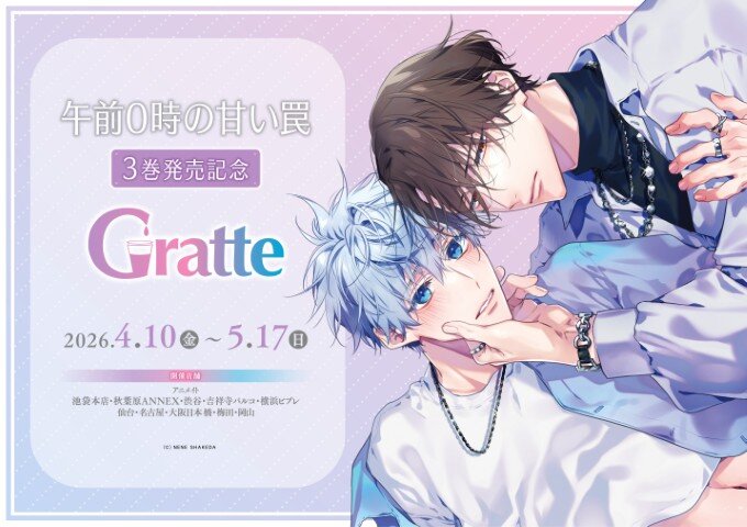 【開催期間】 4月10日(木)~5月17日(日) ★かさいちあき先生「俺の飼い方叱り方」「キミの撫で方躾け方」10周年記念グラッテはこちら ★藤河るり先生「マーキングオメガ」/「最高の小説家」×Gratteはこちら ★「午前0時の甘い罠」3巻発売記念Gratteはこちら